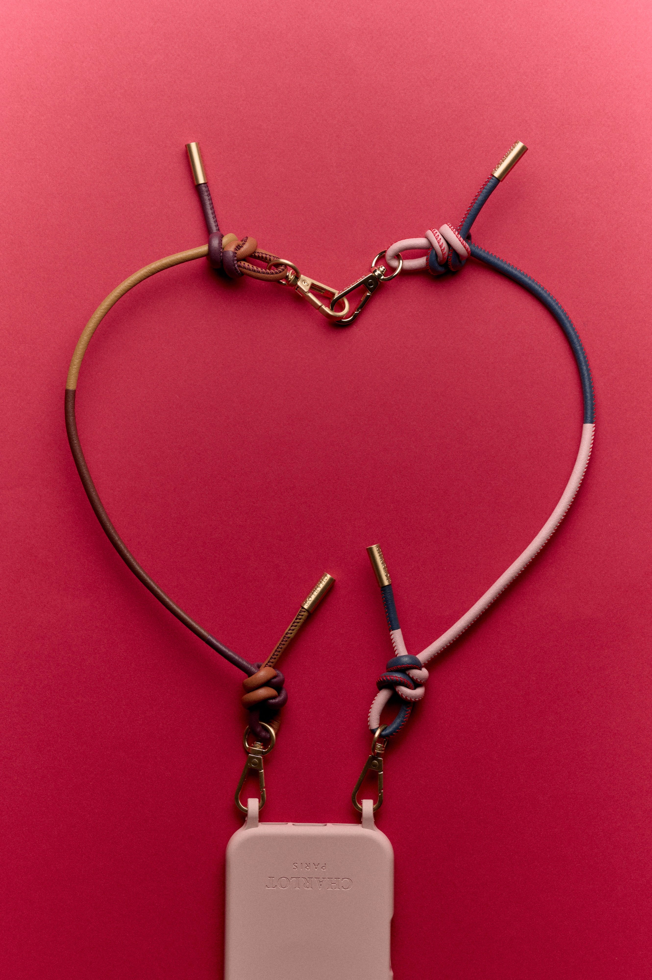 Coque Powder Pink + Mel cuir Long Aubergine