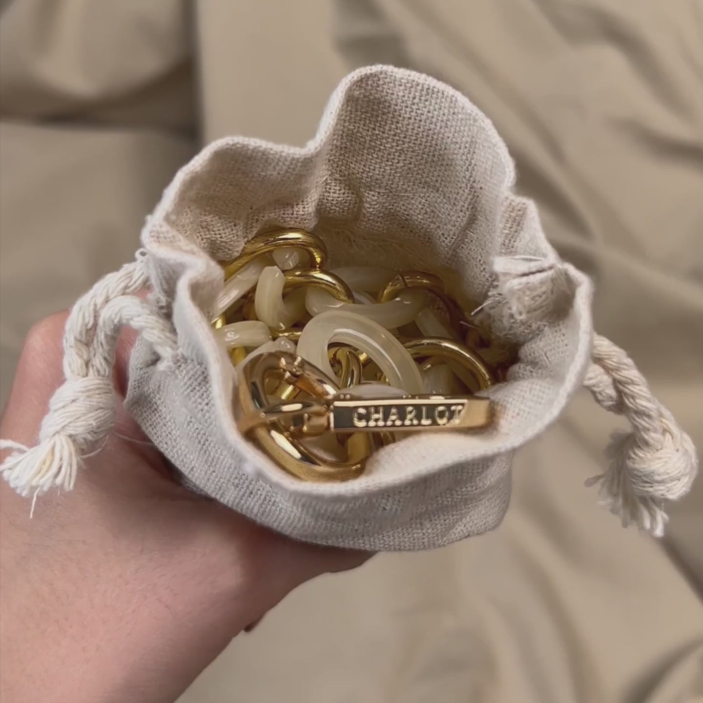 Chaîne Ora Ivoire avec accroches dorées pour porter son téléphone autour du cou