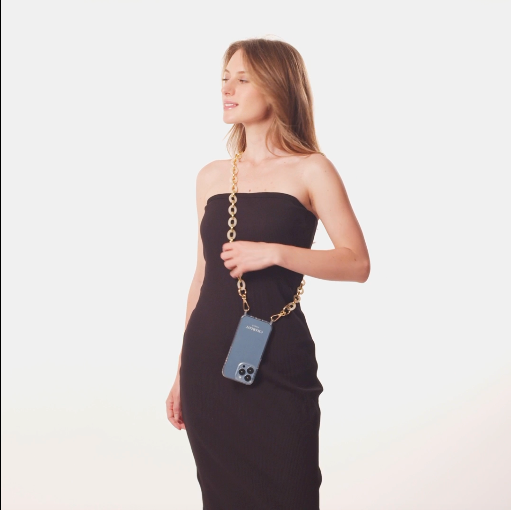 Une bandoulière bijou qui transforme votre téléphone en véritable accessoire de mode.