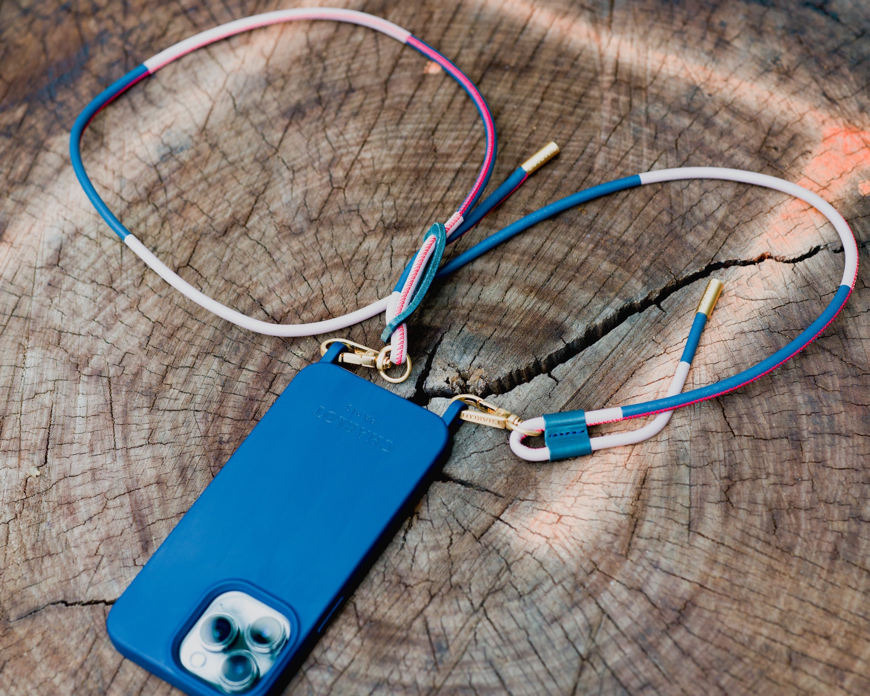 Nos cordons en cuir Noga confectionnés à la main en France transforment votre téléphone en pièce de maroquinerie à part entière.
